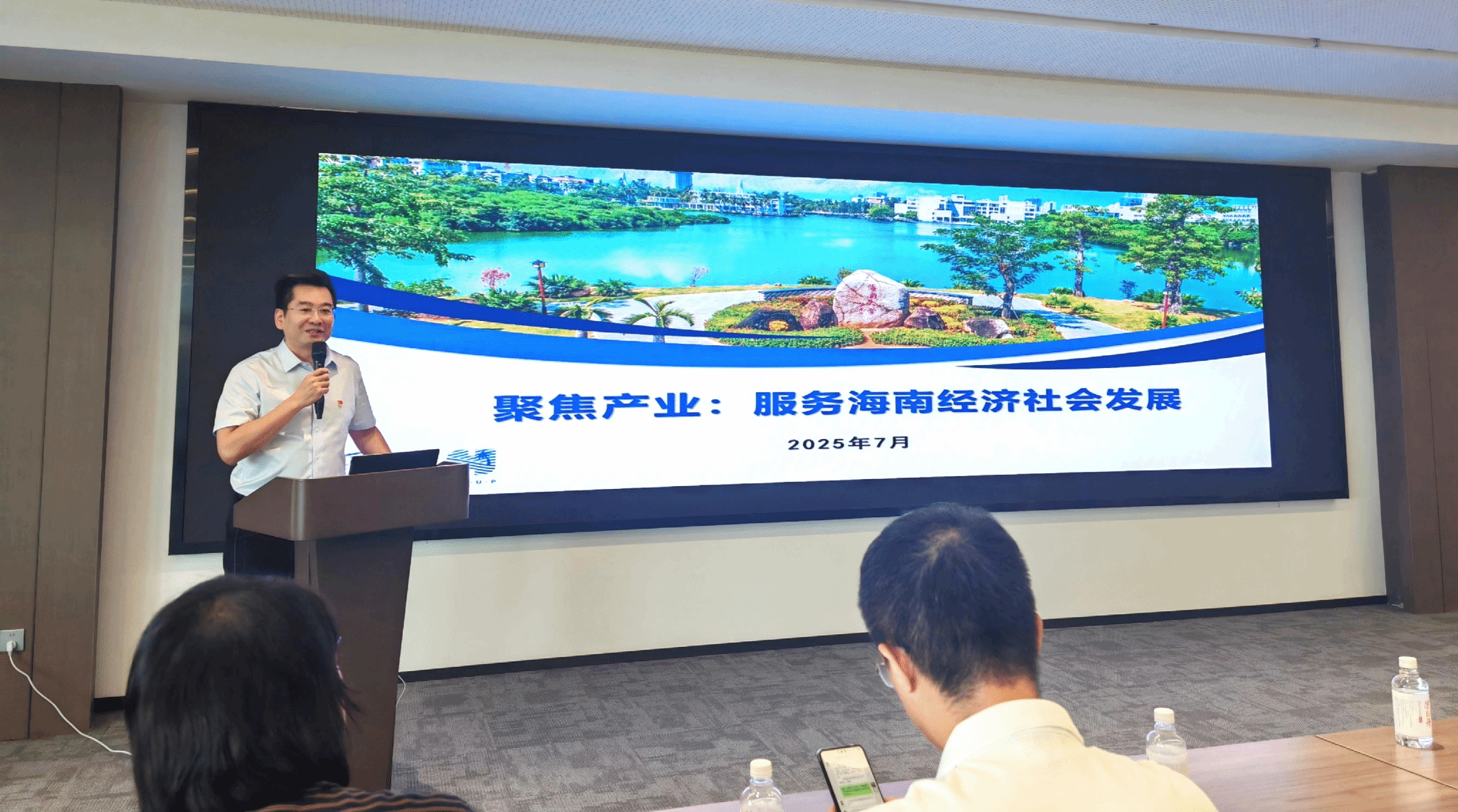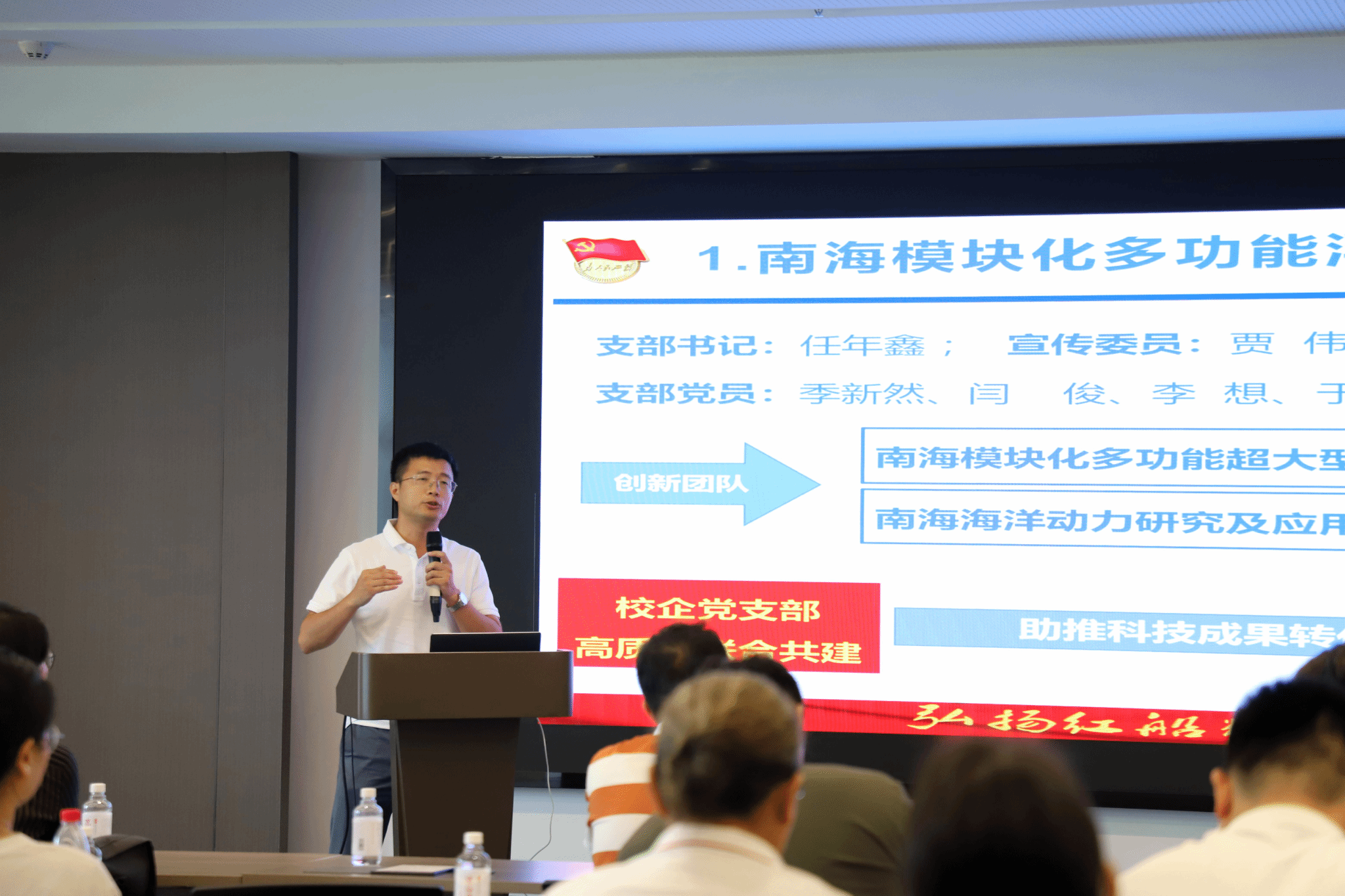 大学科技园管理中心党支部书记、万象城allwincity官网科学技术发展院副院长、万象城allwincity官网科技园发展有限公司董事长韩道同志,深入阐述了高校服务产业对服务社会的撬动作用,结合海南省“ 向海图强 ”的发展目标和“一场两地三区 ”框架下“ 以 场带产、深海智造 ”的战略布局,详细分析了我校可为,我校应为。